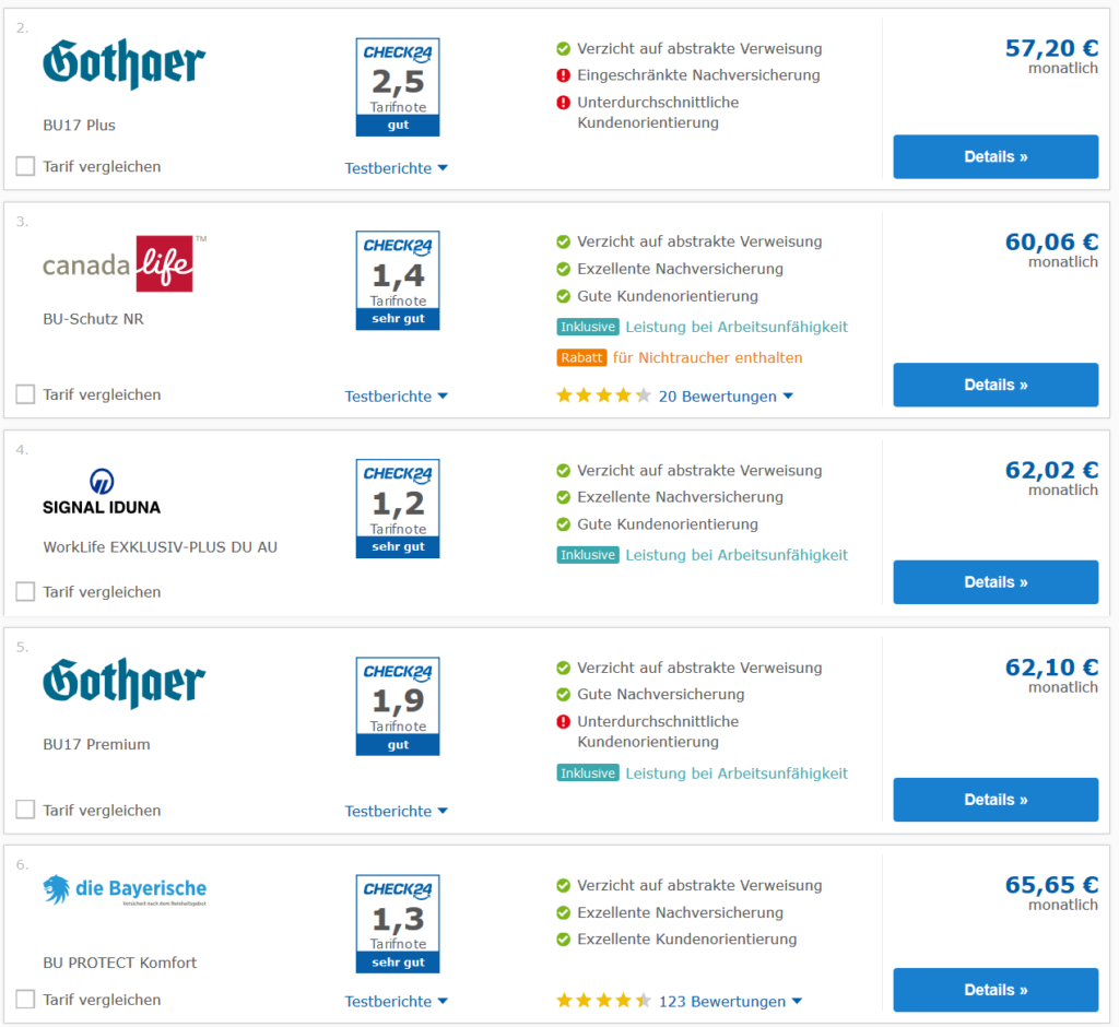 今回参考にしたサイトは、オンライン保険代理店の最大手、Check24 です。