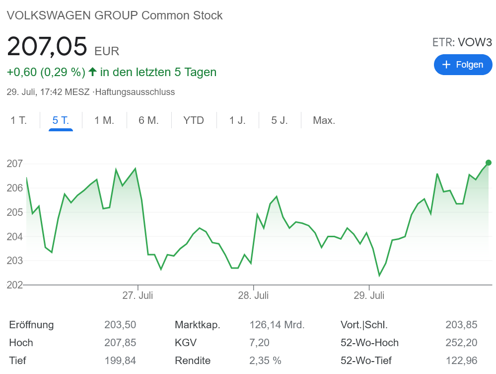 2021年の1月~6月で見た場合、VW 上半期は85億ユーロの過去最高の利益を出しました。