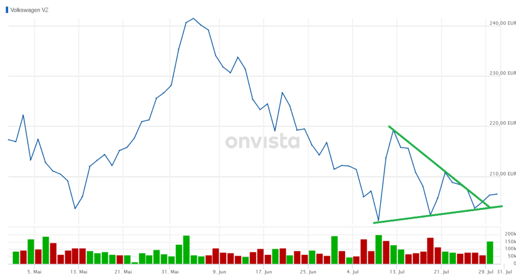 下降の抵抗線203ユーロを割ると、200ユーロも割りそうです。
