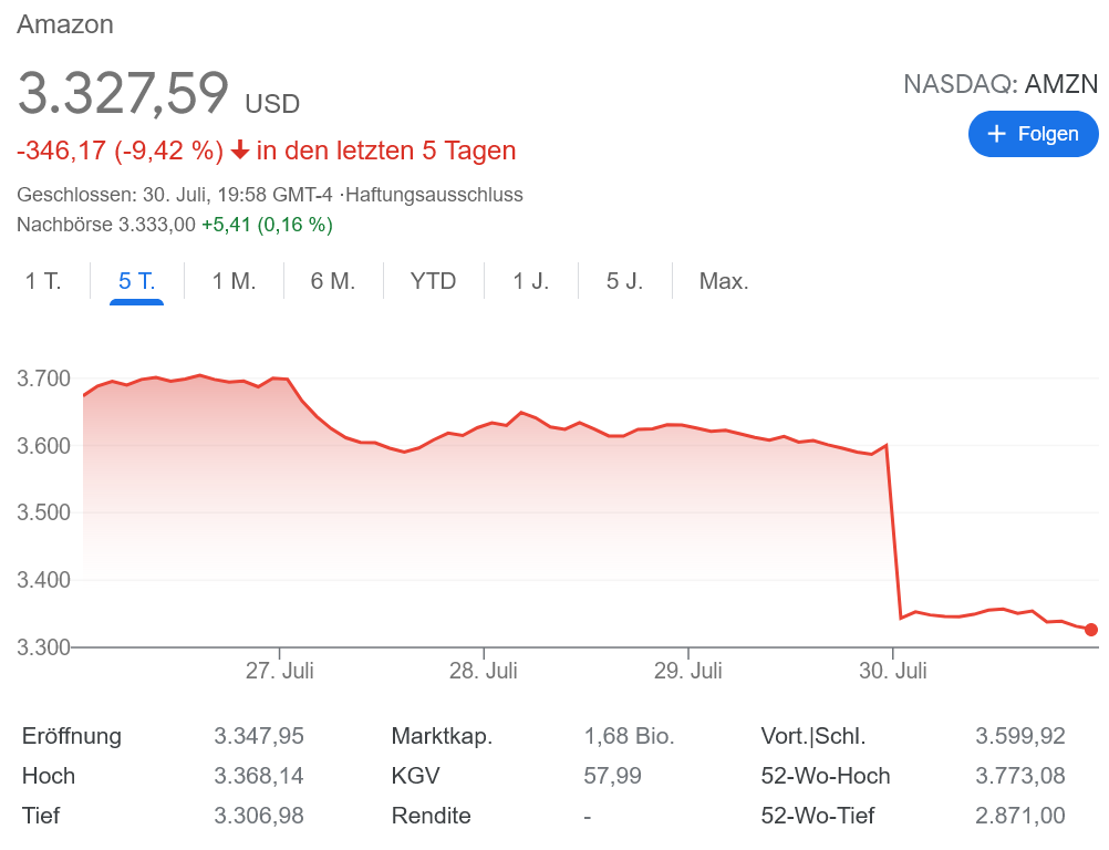 金曜日、安くなったアマゾン株を少しだけ買っちゃいました。