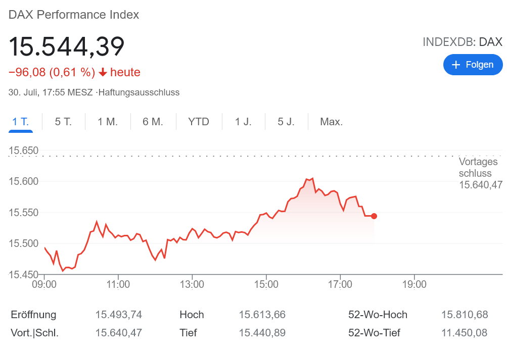市場がオープンすると、DAXは一気にマイナス1.2%まで下落。