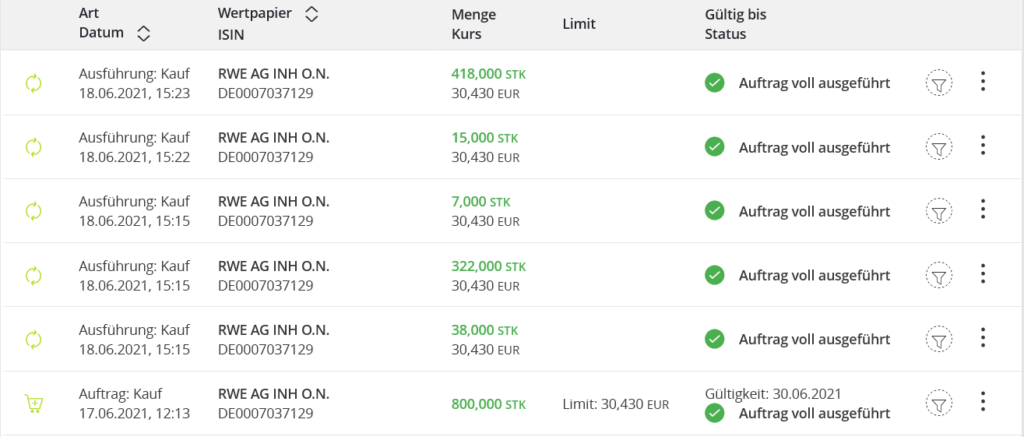 おまけにこの銀行、オーダーを5回にスプリットして買ってる!