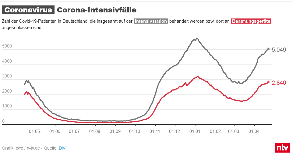 赤字は人口呼吸器に接続されている重傷者で、(統計上)半数は死亡している。