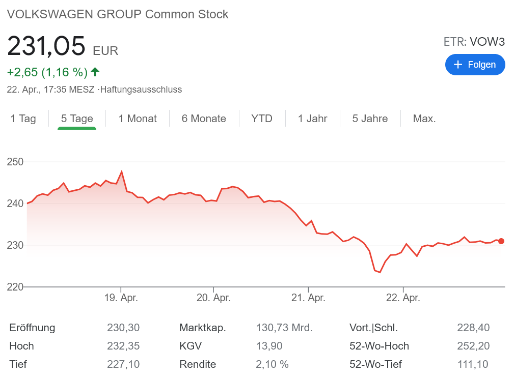 フルクスヴァーゲンの株、はっきり下降に転じました。