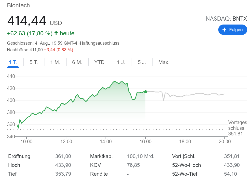 ビオンテック どこまで株価が上昇する?