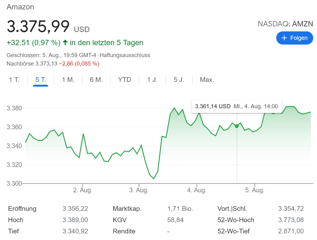 先週、アマゾンショックを利用してアマゾン株を購入。