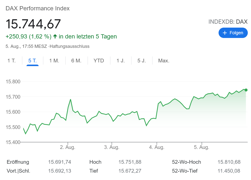 この思わぬいいニュースに、DAXは一時最高値圏に到達!