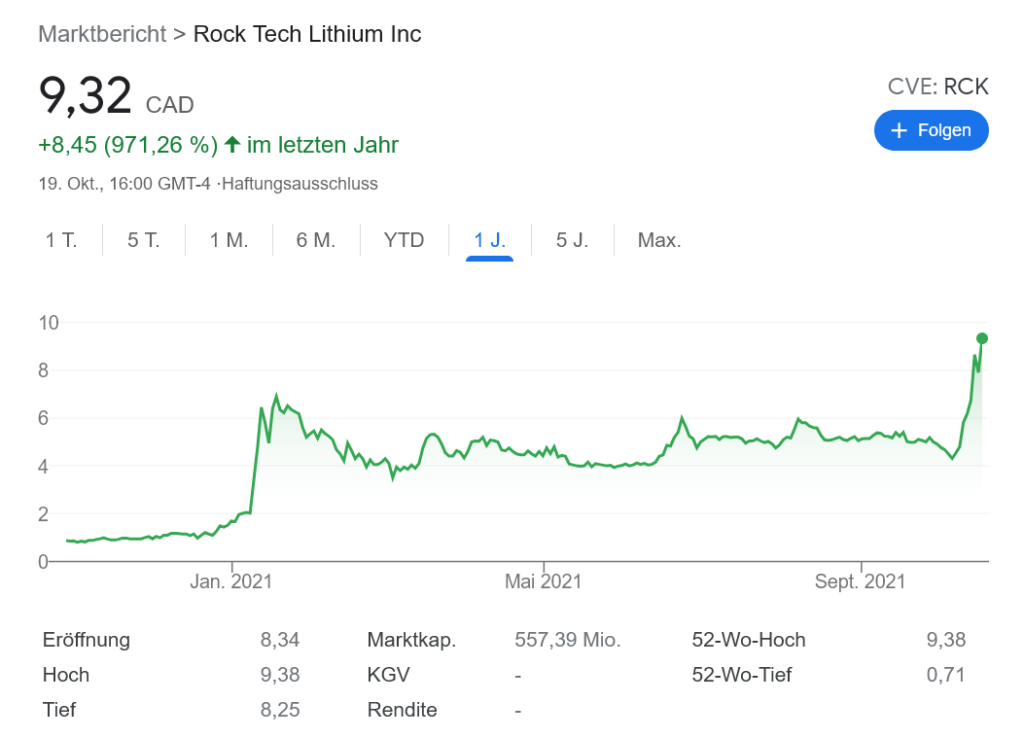 Rock Tech Lithium 株価大フィーバー