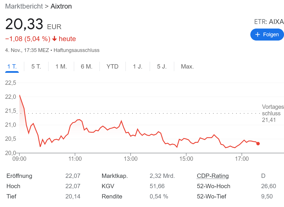 まずは私が先週買った銘柄、Aixtronから始めましょう。