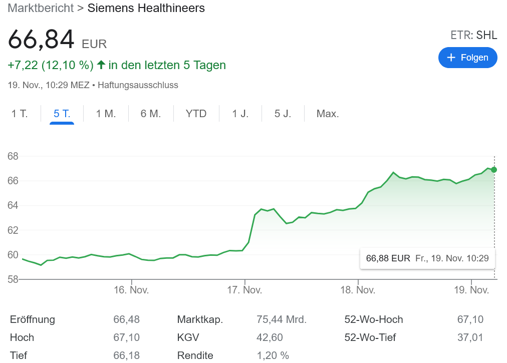 ジーメンス ヘルシニアーズ 株価最高値更新中