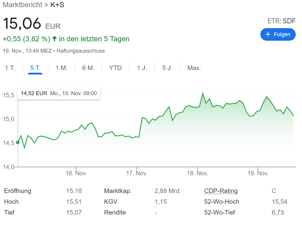 k+sは所有している鉱山の資産価値を下げる事を迫られました。