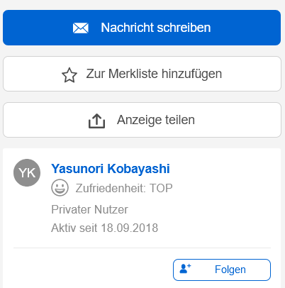 別の言い方をすると、トラブルが発生してもEbay Kleinanzeigeは一切、責任を取りません。
