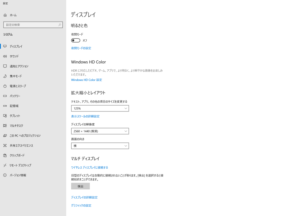 これでは何も読めないので、モニターを125%拡大設定にします。