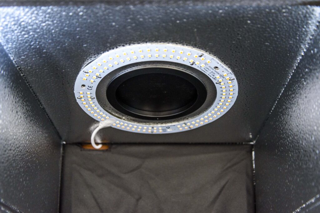 側面が写り込まないようにレンズを撮影ボックスの全部に置くと、