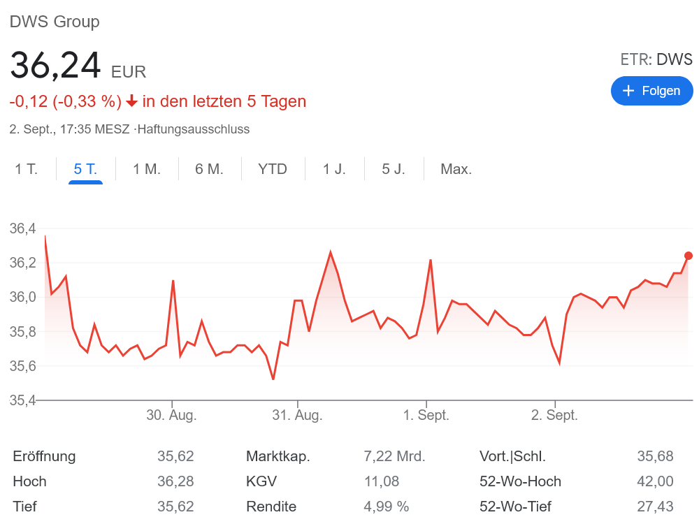 先週、1日で株価が14%も最高で(それとも最悪?)下落したドイツ銀行の子会社、DWS。