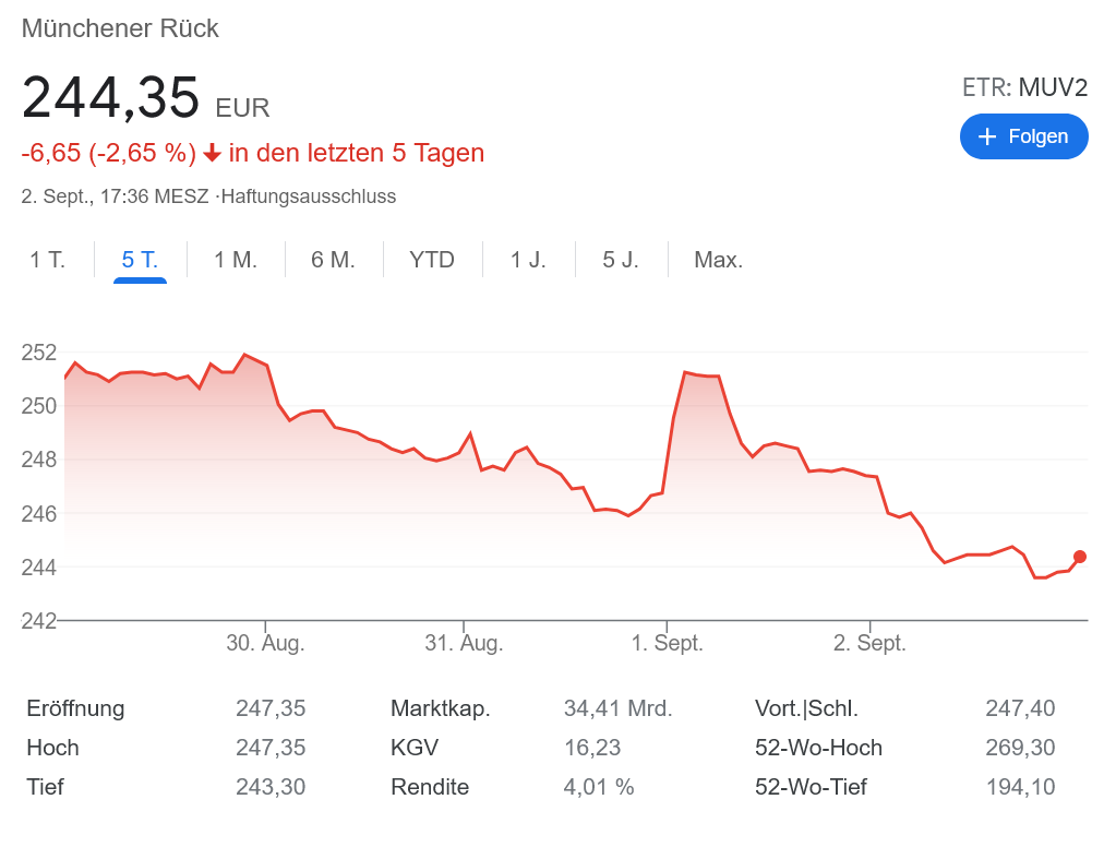世界最大の再保険会社 MüReの株価も、