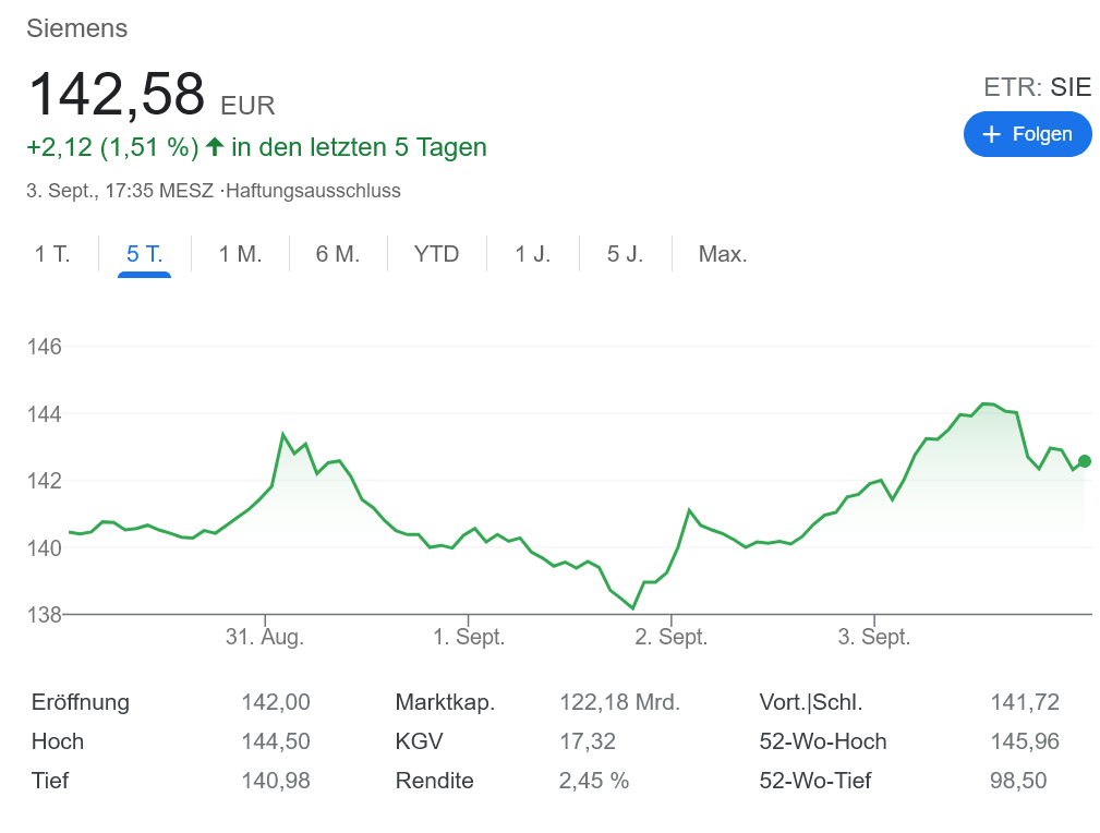 今週、多くの銘柄は株価を下げましたが、ジーメンスは上昇。