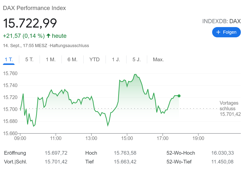 ドイツ時間で14時30分、DAXは一気に100ポイントも上昇!