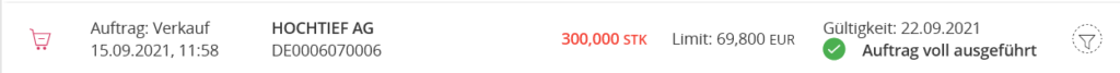 6月にドイツ建設業界最大手 Hochtiefの株を買いました。