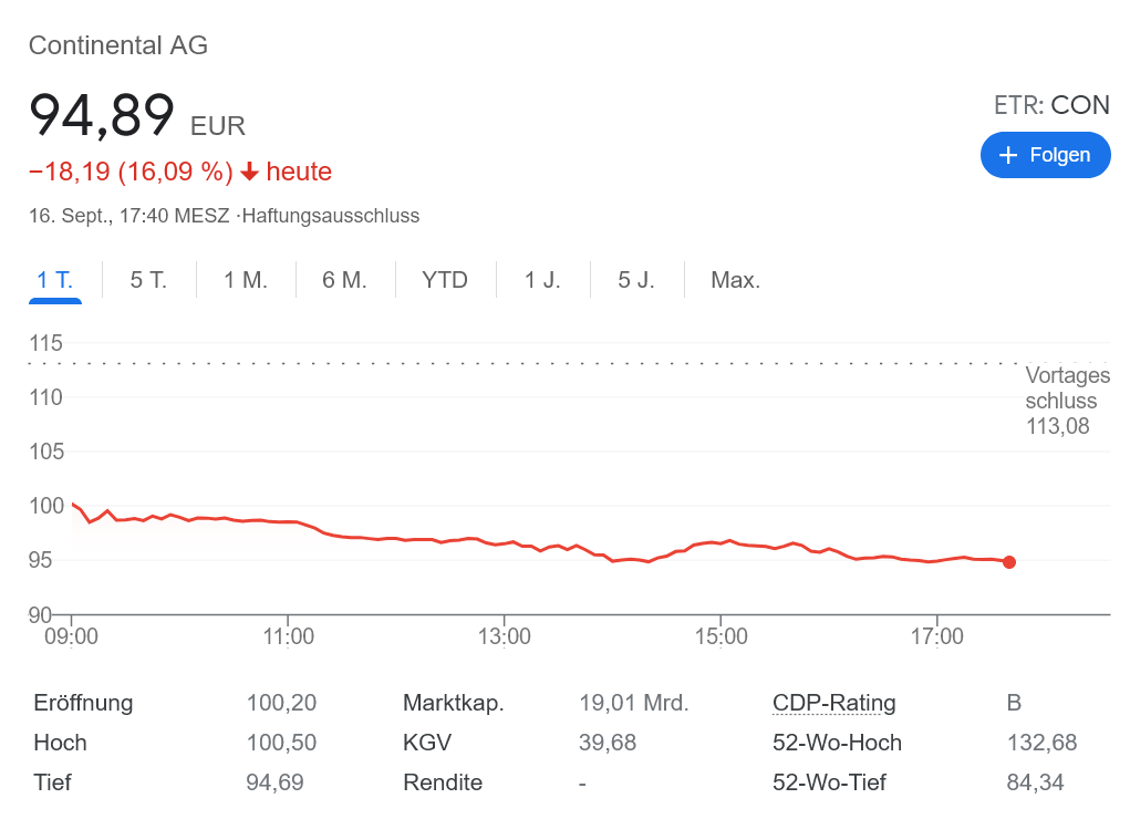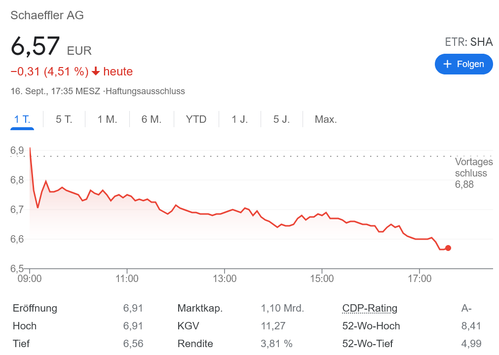 今回、子会社のコンチネンタール、それにヴェヴァスコの株価が下がると、親会社シェフラーの株も大きく下げました。