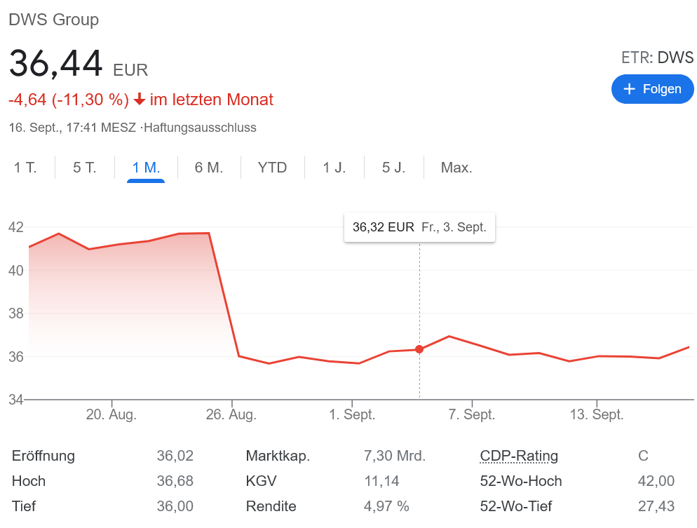 3週間前、株価が大きく下落した投資ファンド DWS。
