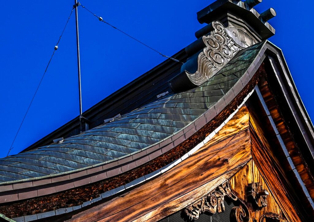 この写真を見てやっとわかったんですが、この屋根の下の丸い飾り物。