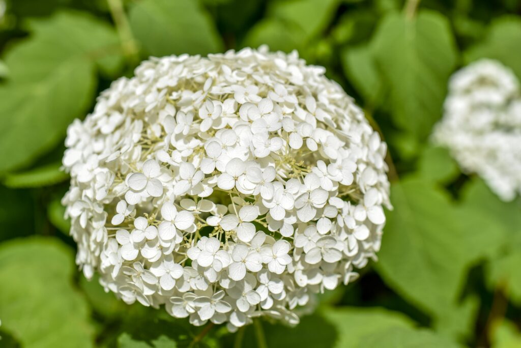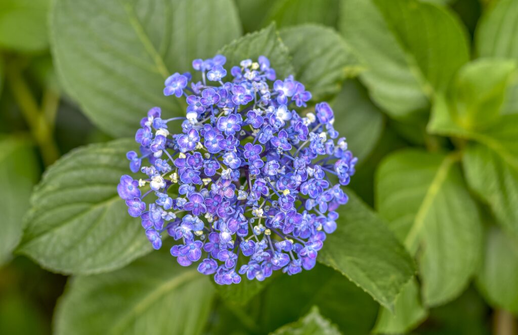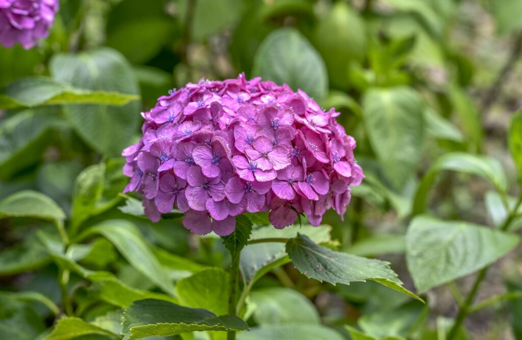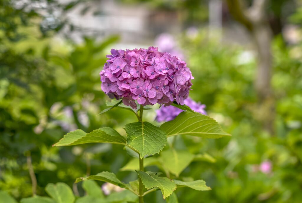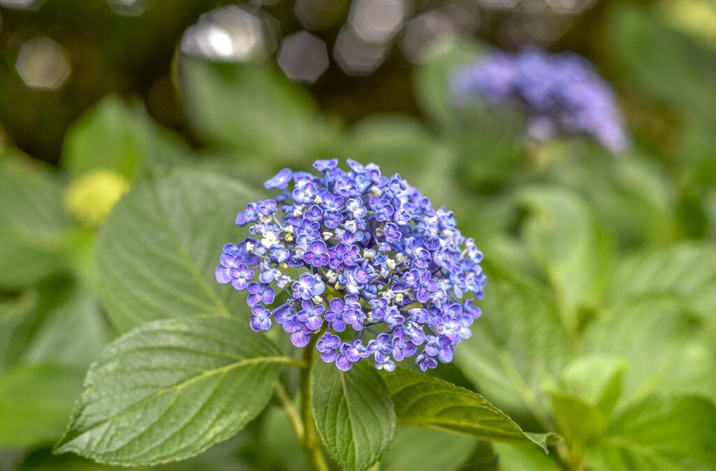 まん丸に咲いたアジサイが、ボケた背景から突出していて綺麗。