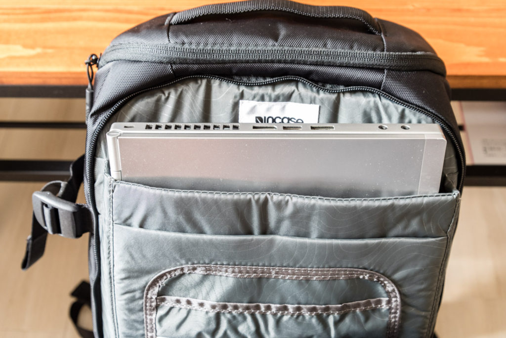 使う予定はないですが、少々太めのノートパソコンも入るのがいい。