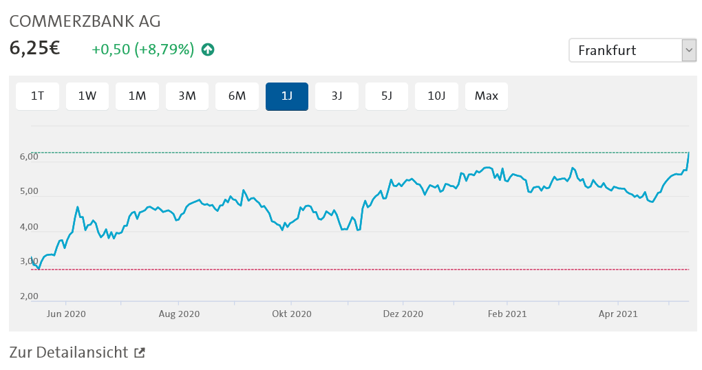 株式市場が好調で、コメルツ銀行もその波に乗れました。