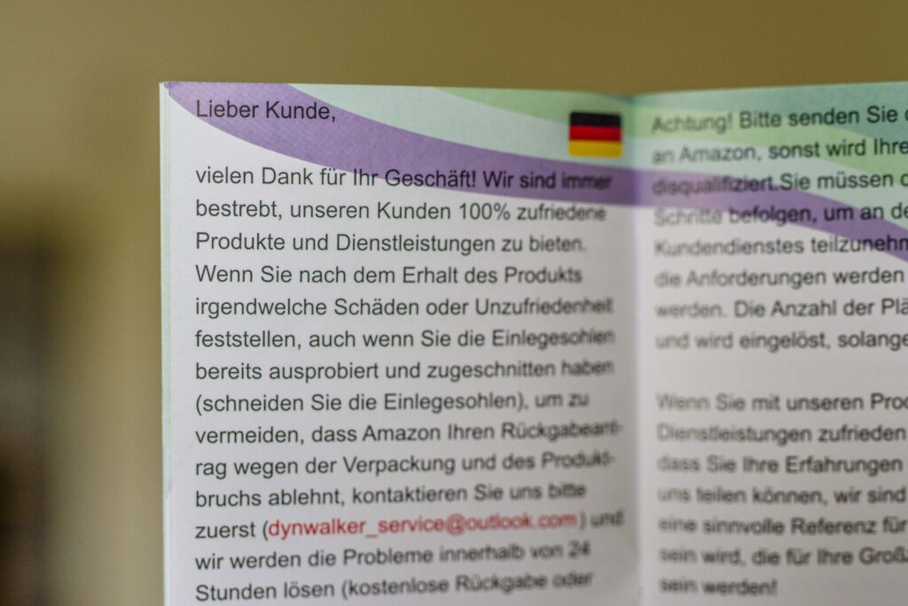 もうひとつは、インナーソールについてくる取り扱い説明書。