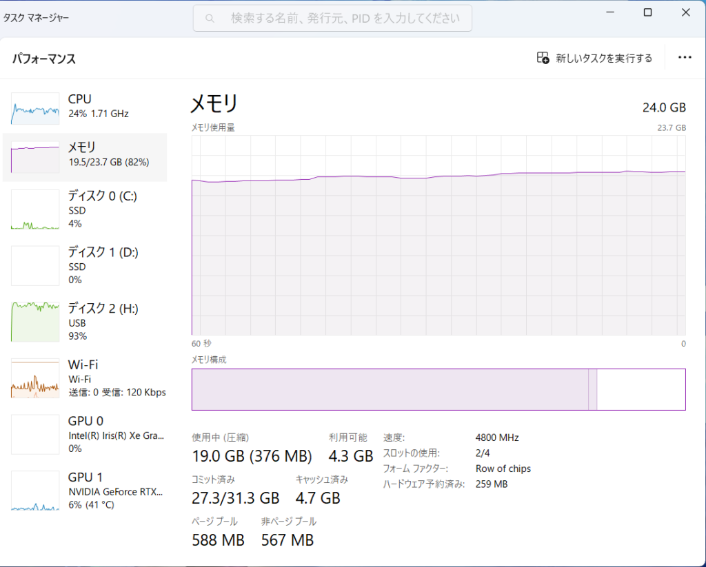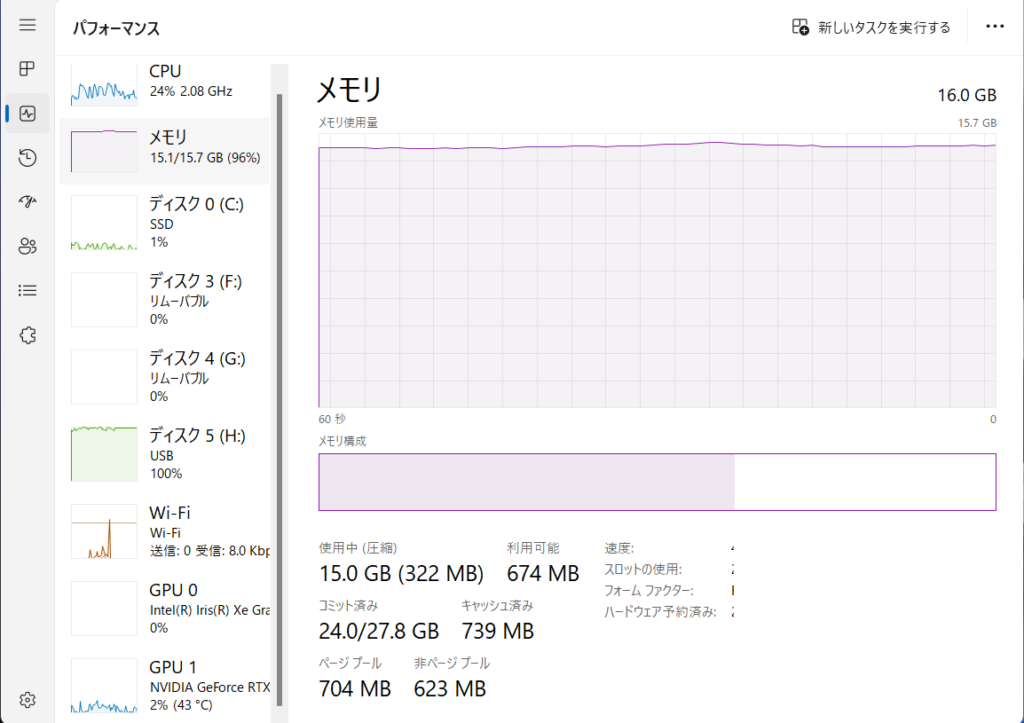 が、これが半端ない量で、メモリがマックスの使用量に!