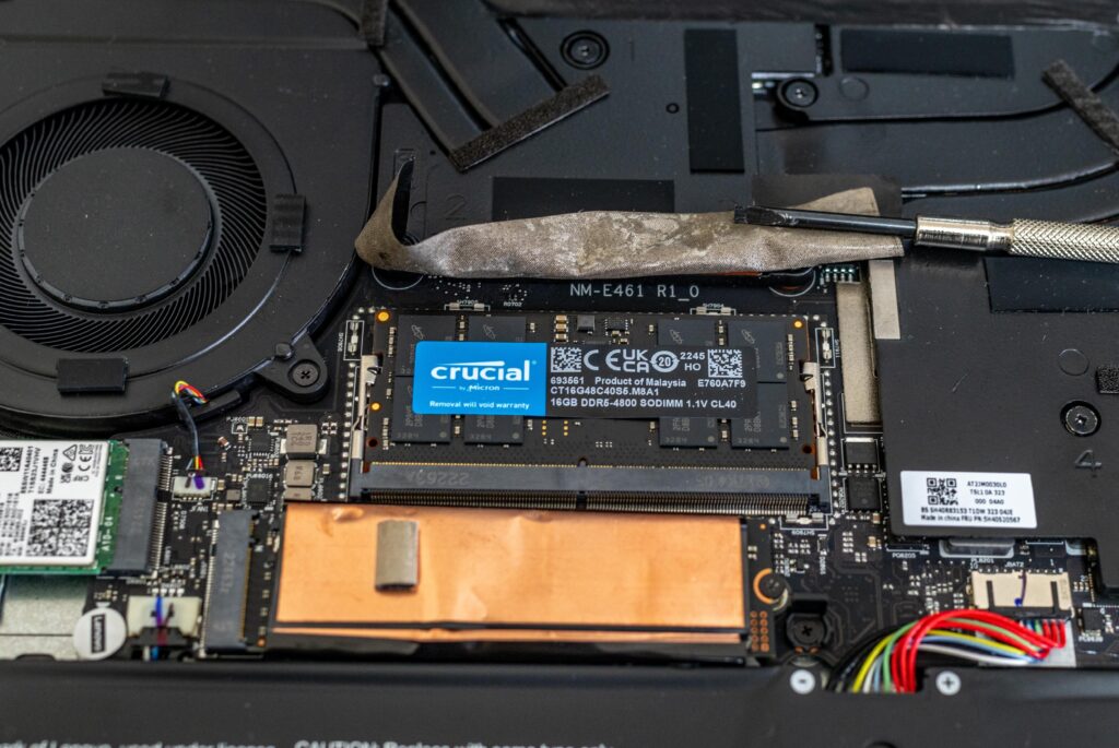ここに9900円で買ったCrucial 16GB ノートPC用メモリ DDR5-4800を装填。