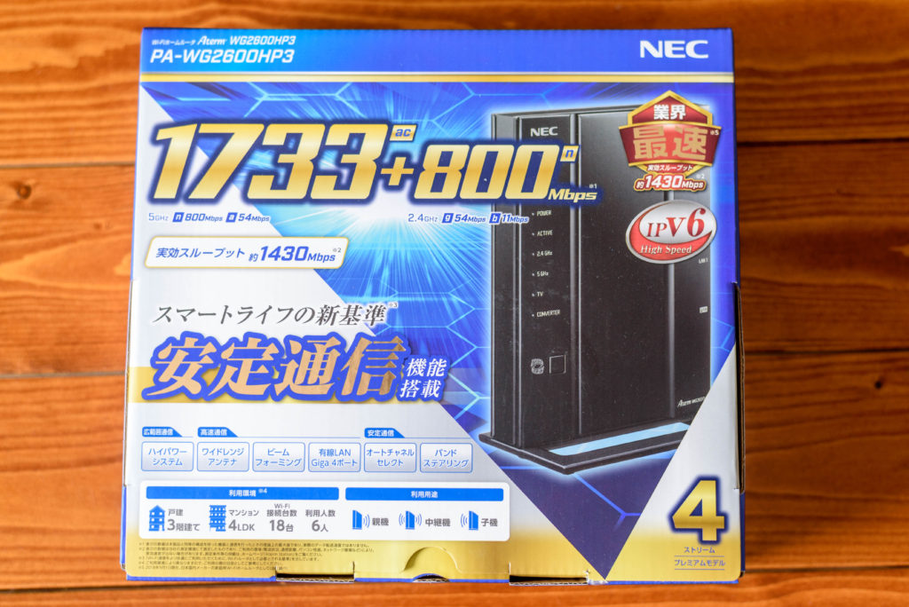 この問題を解決するため、IPoE 対応 IPv6 ルーター、NEC PA-WG2600HP3を購入。