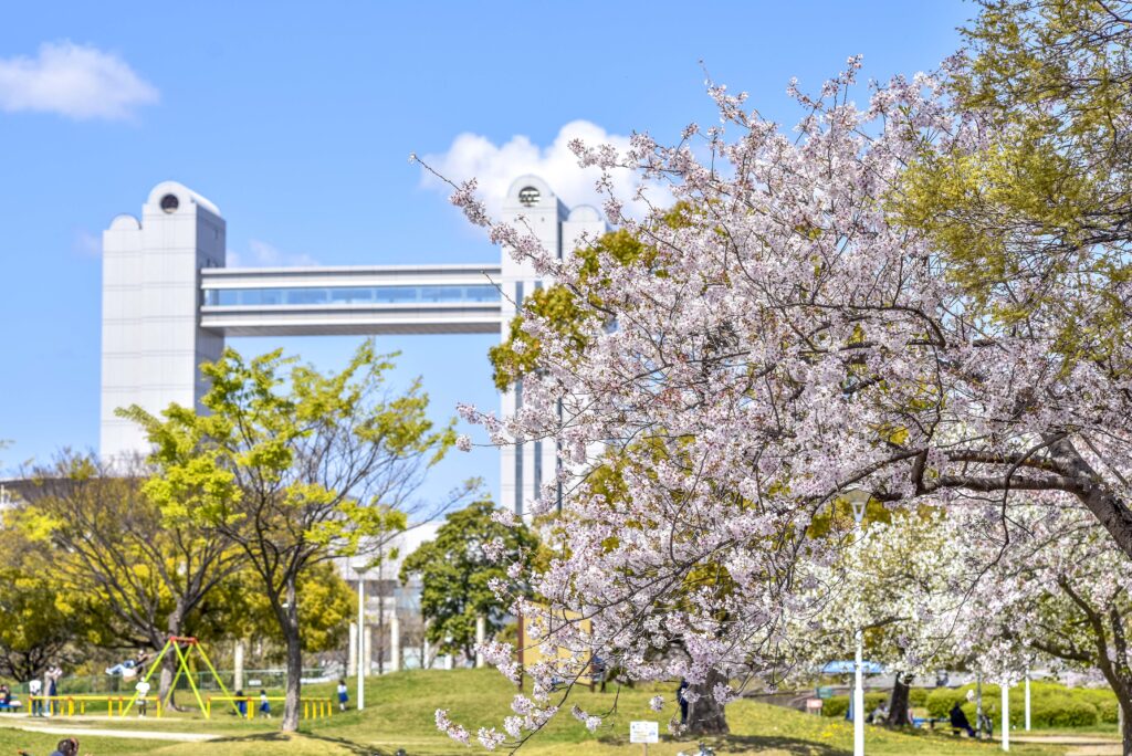 今度は前面の桜にピントを合わせて、背景を少しぼかしてみました。
