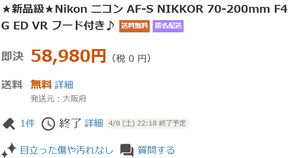 そのせいか、Nikon AF-S NIKKOR 70-200mm f4G ED VR、まだ新品を販売中。