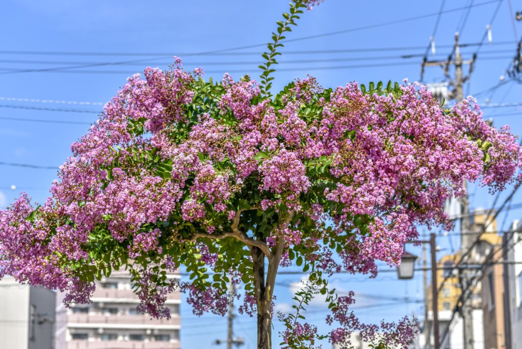 最近、街路樹に花が咲いてます。