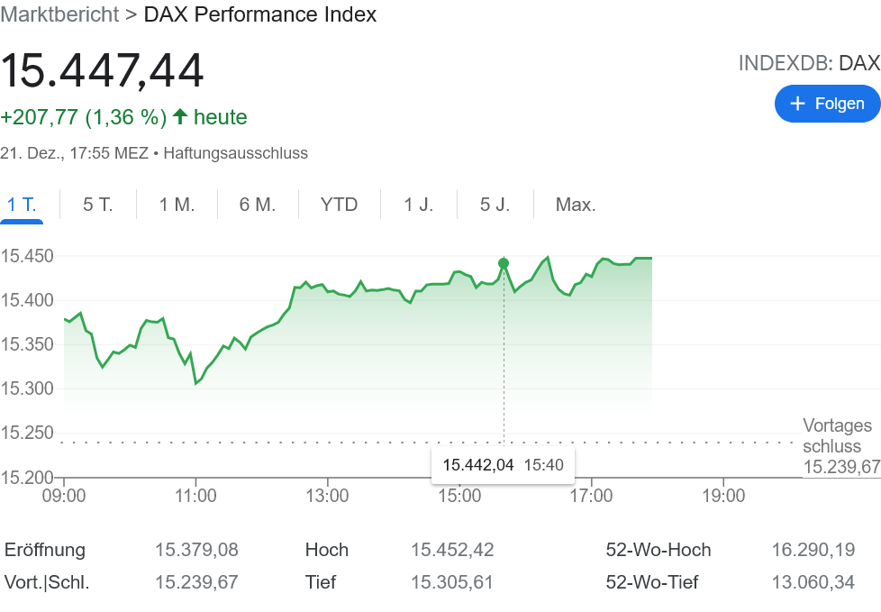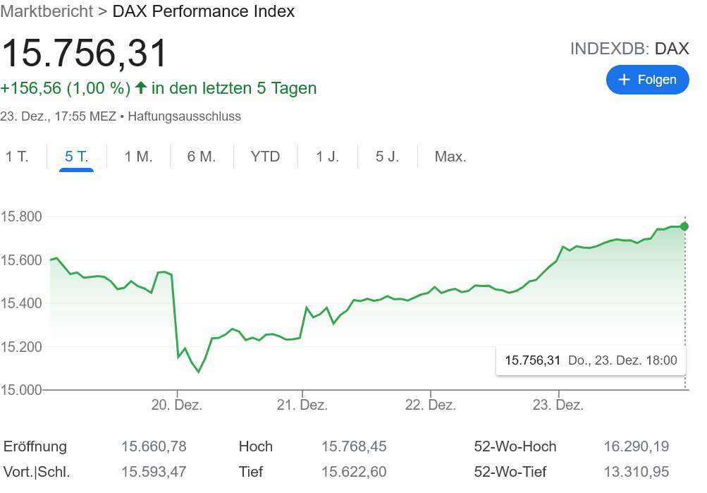 ドイツの株式市場、12月24日(金曜日)はクリスマスのお休みです。