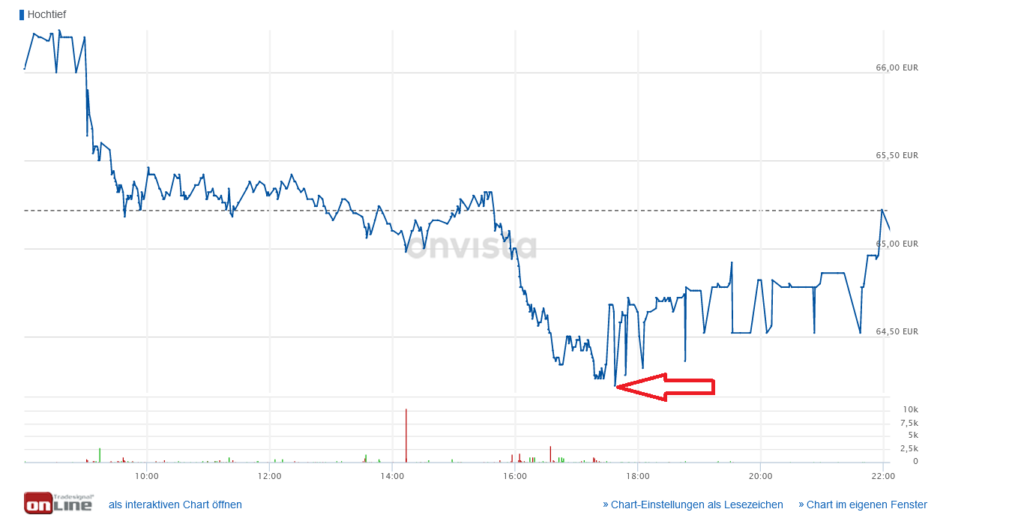 株価はインフレ率が発表されると、64.22ユーロまで急落。