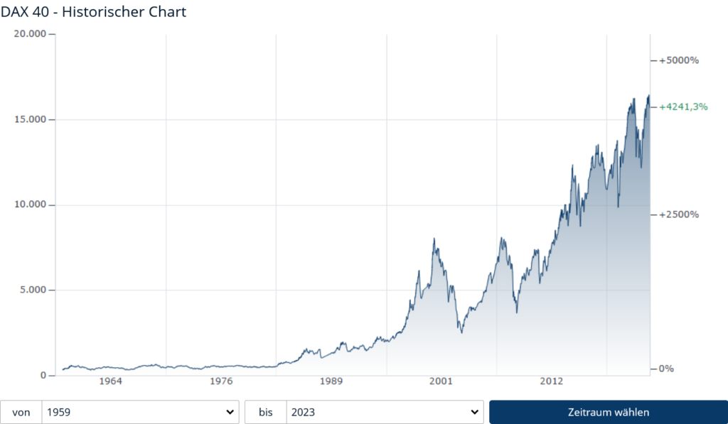 1959年にドイツの株式インデックス(以後DAXと略)に投資していれば、今、実に4214%も増えている。