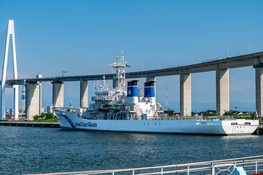 その横には日本海軍、訂正、海上保安庁の巡視艇が停泊。