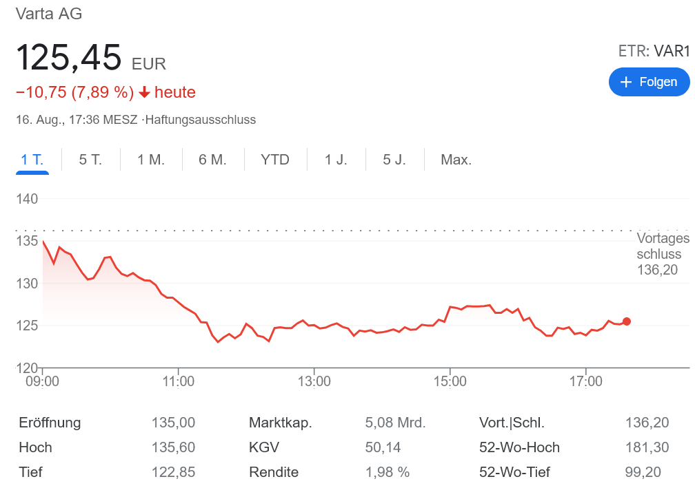 先週、電池メーカーのVarta株、大きく下げました。