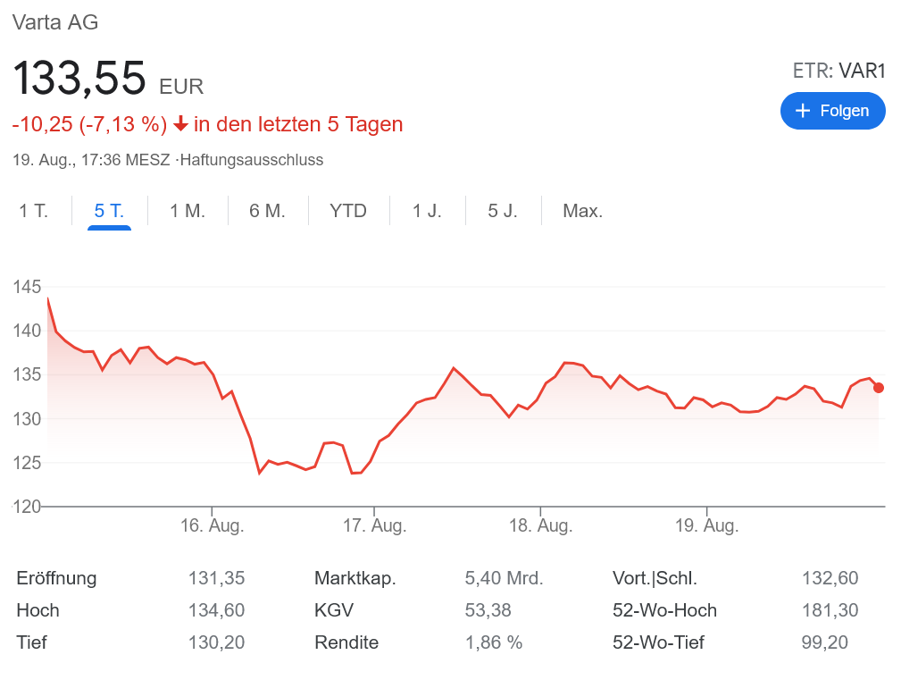 電池メーカー Varta 株下落後のリカバリーなるか?