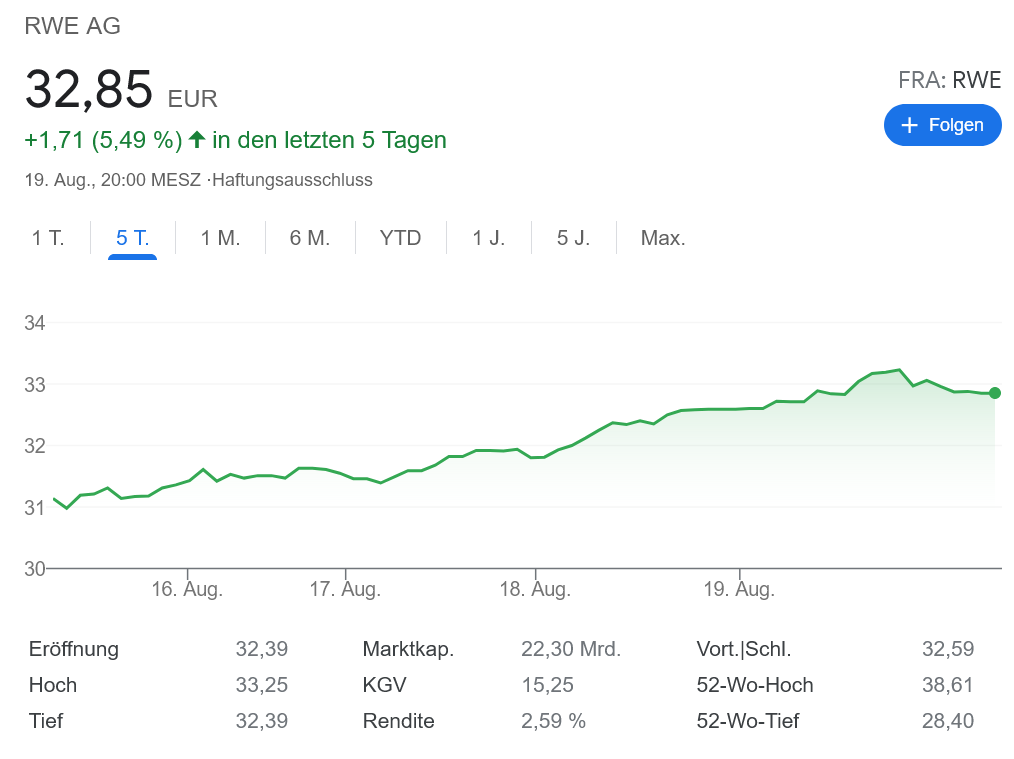 2か月前に購入した電力会社 RWEの株。