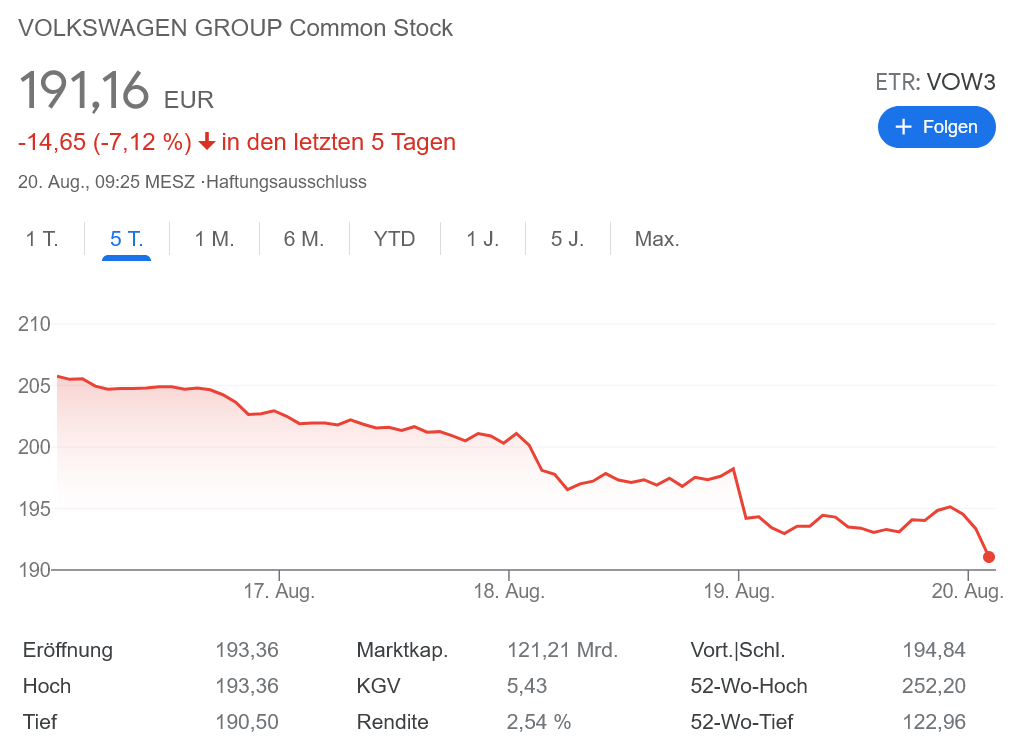 VW 200ユーロを割り込む!