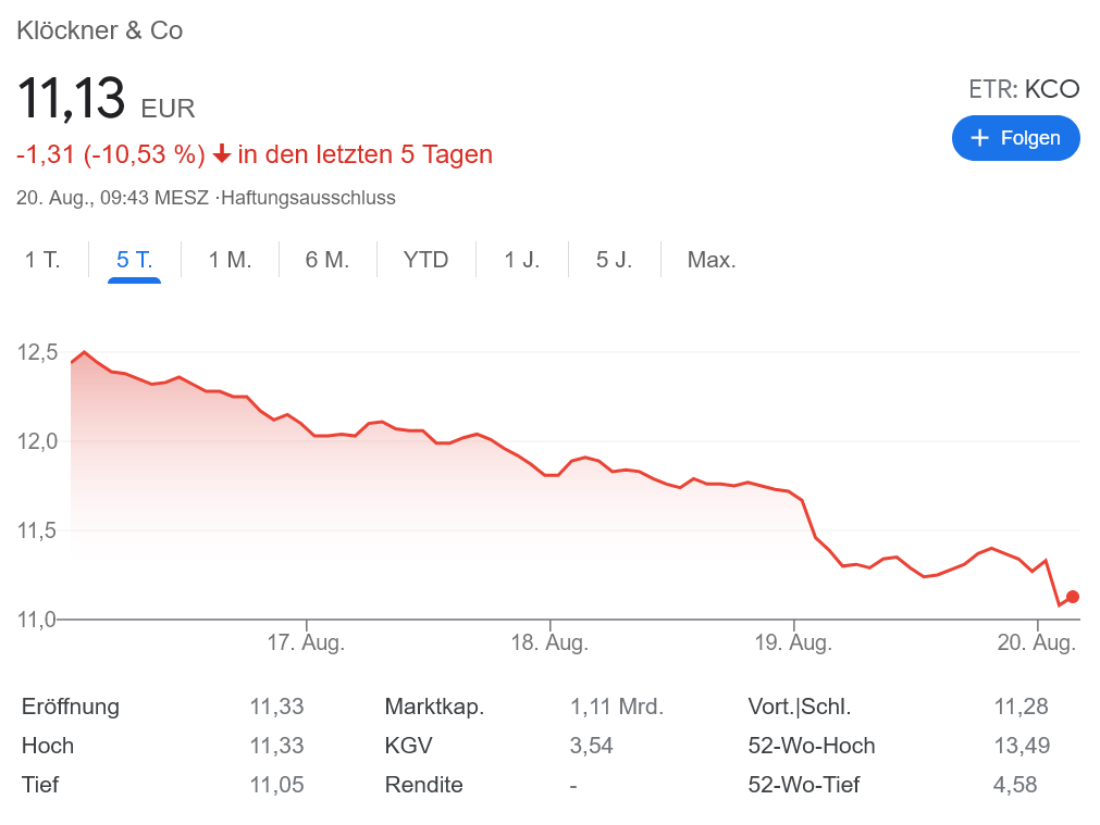 として紹介していた鉄鋼販売店 Klöckner もその余波をモロに受けました。