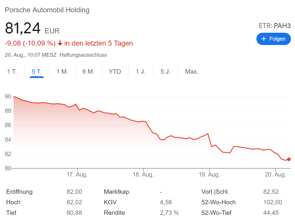 株価の動きは、ほぼVWの株価に連動しています。